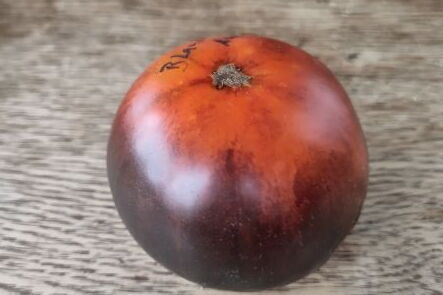 Blau-schwarze Fleischtomate mit gelb-orangenen Akzenten. Exzellentes Aroma und sehr dekorativ.